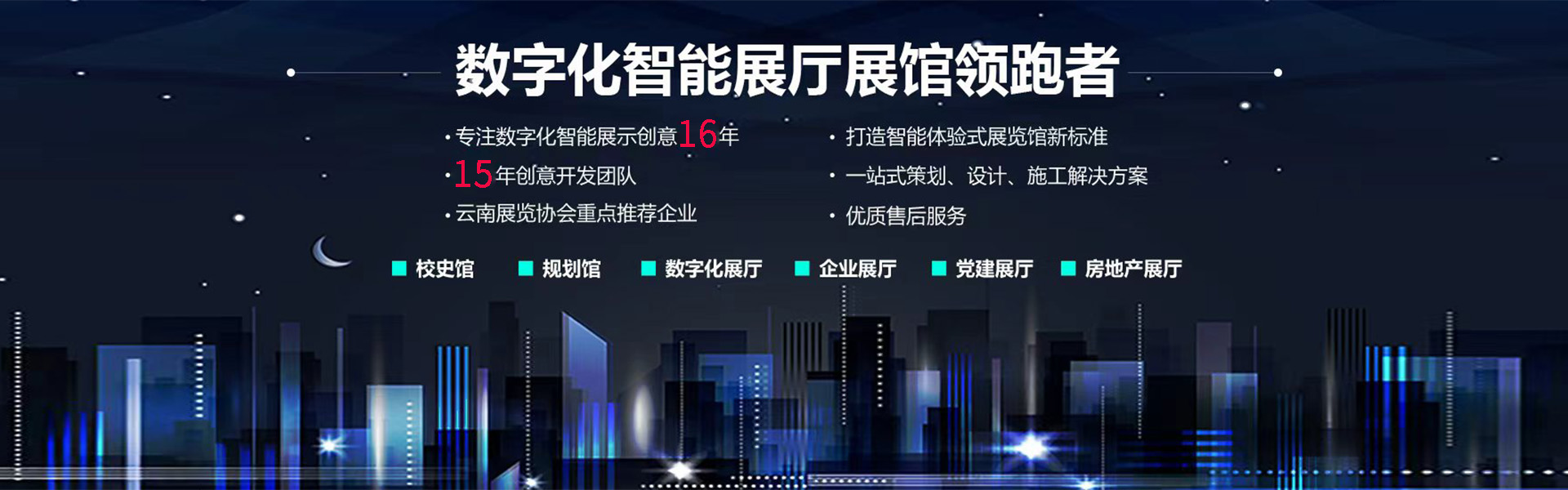 昆明華文創意展覽有限公司是一家以企業館,產品館,黨建館等各類文化主題展館數字化策劃布展的專業性公司。公司秉承“文化創意,科技創新”的理念,以數字化智慧展廳引領者為己任。 依托十二年的展覽展示策劃,設計布展經驗,十年設計師團隊,專業為企業展館,產品展廳,黨建展廳,規劃館,博物館,主題館等提供整體策劃、方案設計、布展施工、多媒體安裝調試、軟件開發定制,宣傳片制作和數字沙盤定制等一體化總承包服務。 公司為西南數字化智慧展廳總承包行業引領者。公司歷程2007年云南展臺領跑公司華文前身為昆明越典展覽工程...